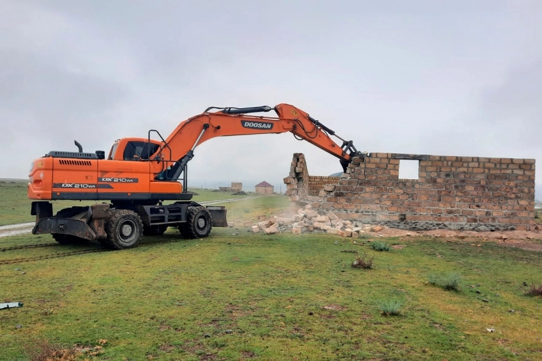 Göygöl rayonunun Firuzabad qəsəbəsində kənd təsərrüfatı təyinatlı torpaq sahəsində qanunsuz tikili sökülüb.